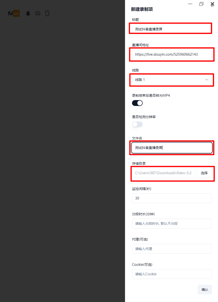 Fideo这款软件支持多款平台在线进行直播录制,这里我仅提供抖音的详细教程,但是使用操作都是大相径庭。